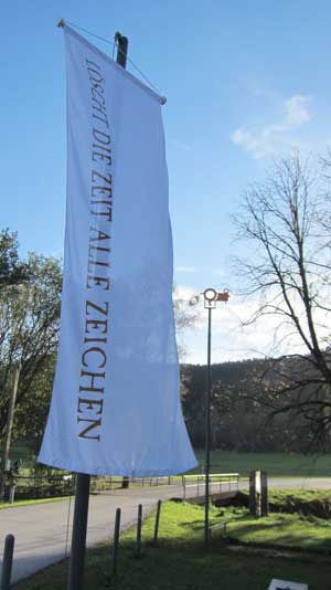 erscheint der Fahnentext ohne Satzzeichen und steht so in seiner Vieldeutigkeit